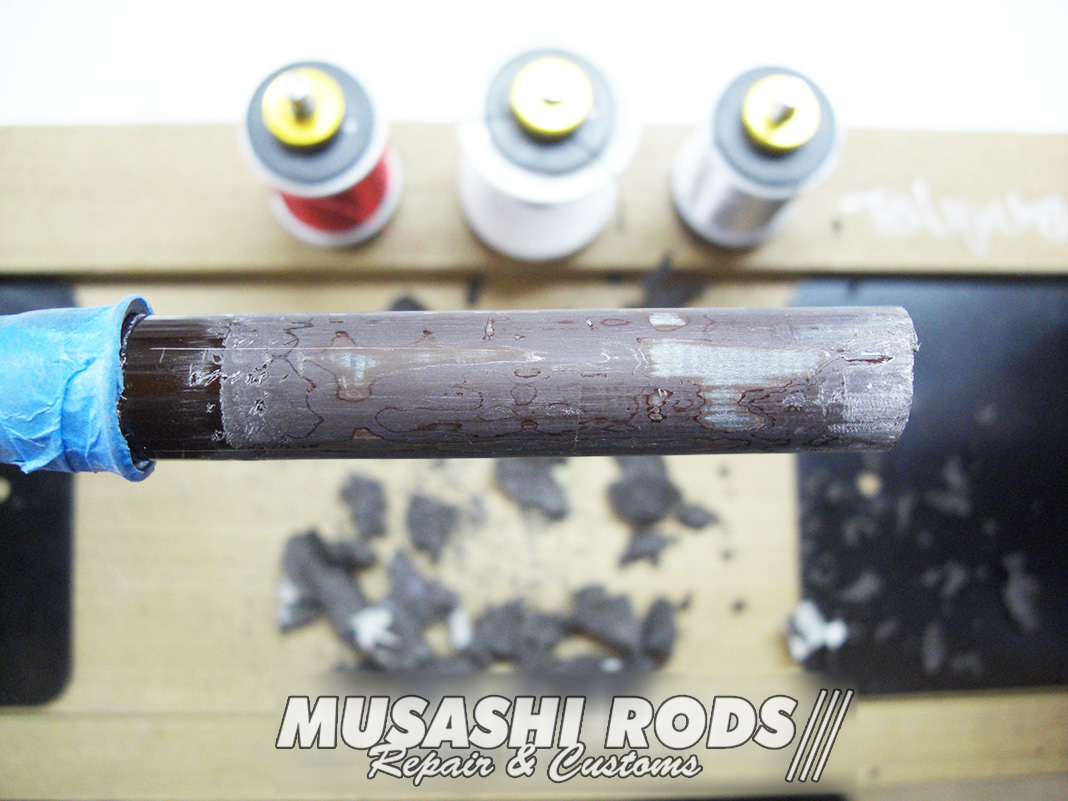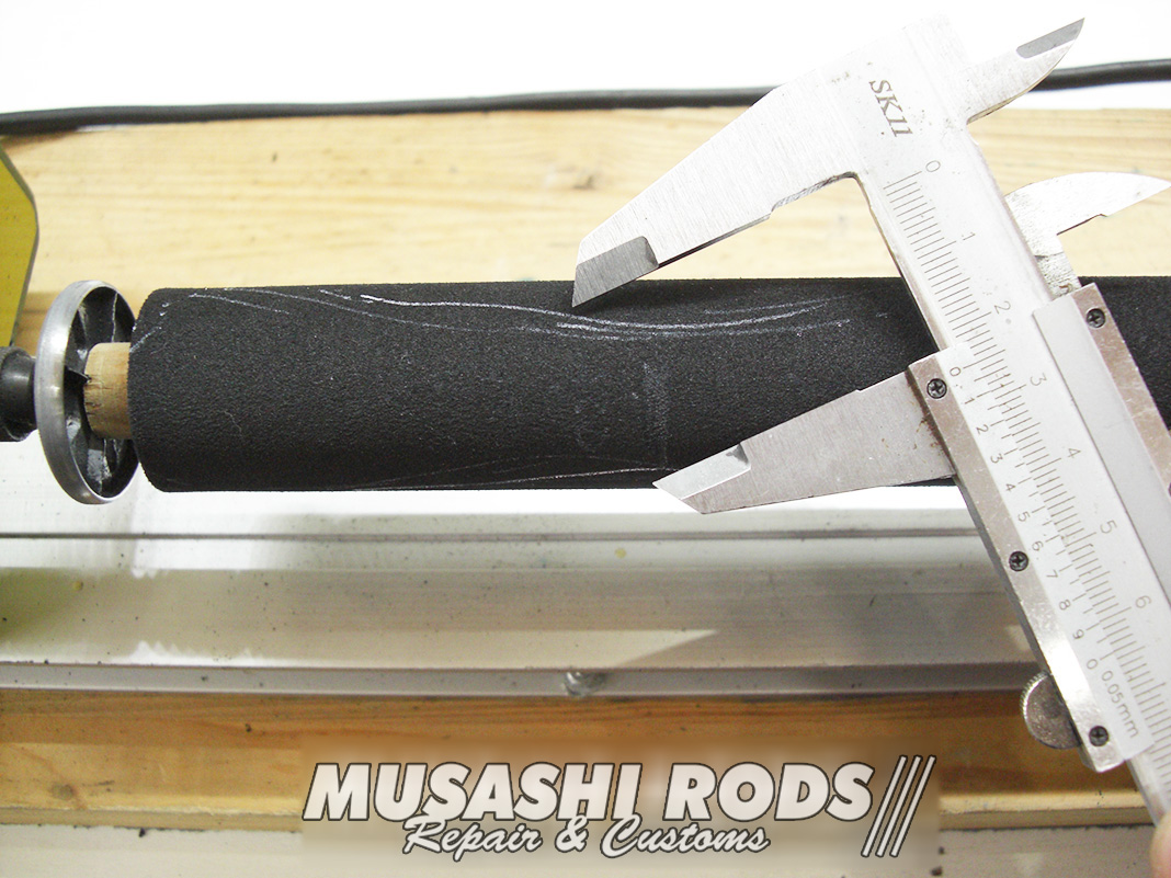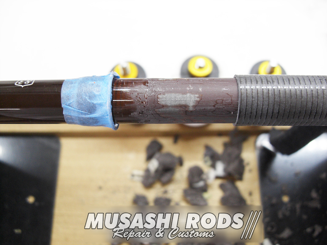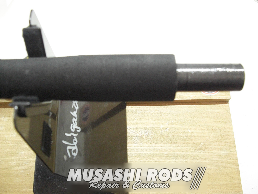 エンドグリップ の延長カスタムですが、ツララ エルホリゾンテ83 は元々エンドグリップは長いですが…クライアント様が自身で ショートカット されたモノを再度、元どおりに戻す修復カスタムです。リールシートの上部のチェックからエンドまで 31.4cm を 44.4cm へと延長します。
