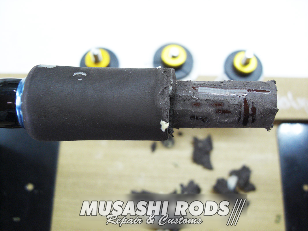 エンドグリップには ラバーカバー を付ける事も可能です。今回の作業は 約15,000円~20,000円 前後の費用となります。後はクライアント様に引き渡す準備をしまして完成です。ロッドの修理 や カスタムで お悩みの方は ご相談ください。修理カスタムの申し込みは こちら からお願いします。