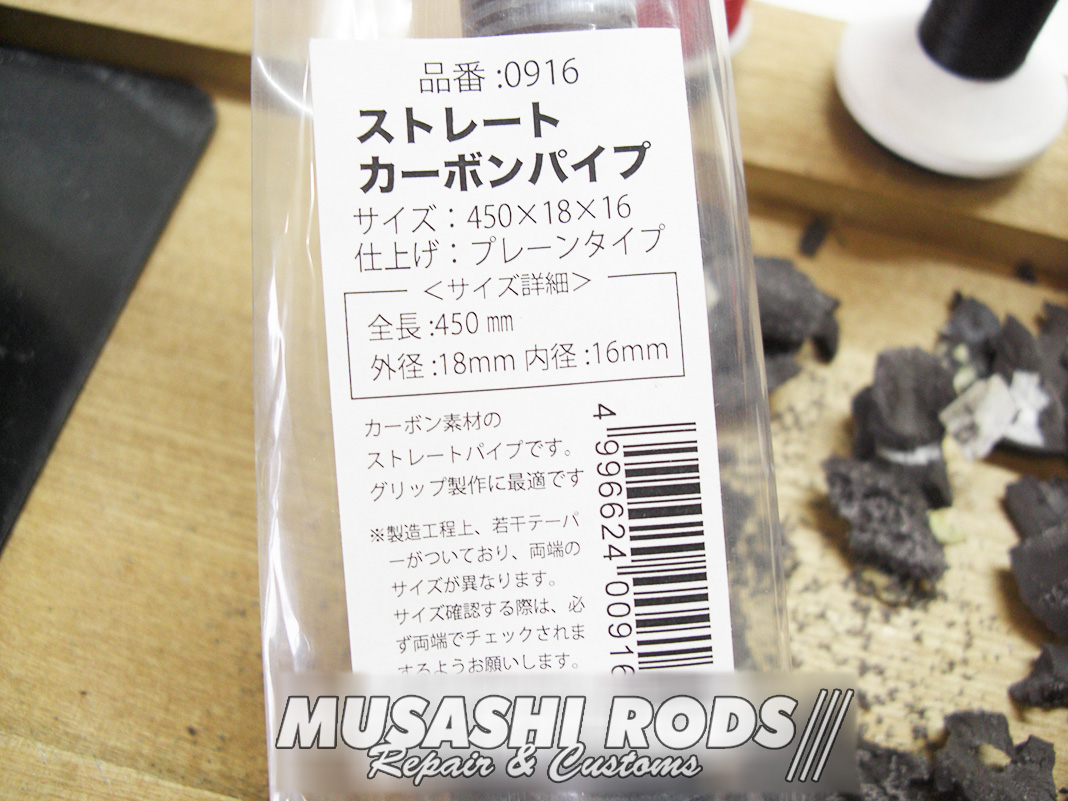 グリップを長くするので カーボンパイプ を中継ぎで入れます。内径は16mmですね。