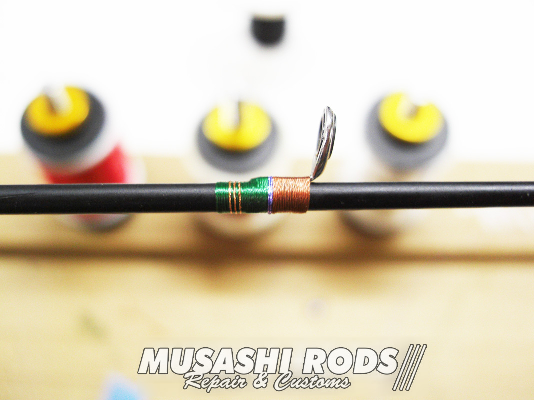 コーティングは 数回に分けて施工します。それらしくなってきました。今回の代金は ガイド代金込みで 約2000円 前後 となります。ロッドの修理 や カスタムで お悩みの方は ご相談ください。修理カスタムの申し込みは こちら からお願いします。