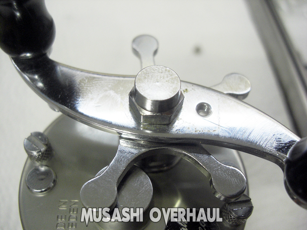 あとはハンドルリテーナーのナットを締めまして完成です。今回の代金は 5,000円+ベアリング代金 でした。リールのオーバーホール&メンテナンス、修理チューンはお任せください。リールは大切に!