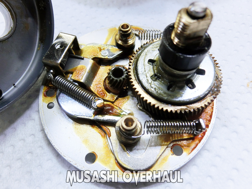 内部のグリスの水分が蒸発しており グリスが硬くなり 動作に支障をきたしておりました。通称:ドライアウト現象。早めのメンテナンスをしないと クラッチパーツ や 各パーツ に支障をきたします。