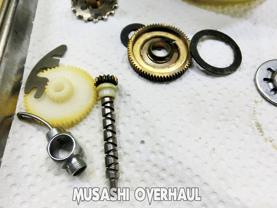 オーバーホールの基本ステップは以下の通りです:①完全バラ ②完全洗浄 ③完全磨き上げ が基本です。[展開図]