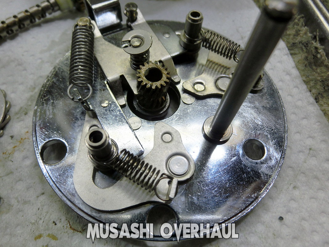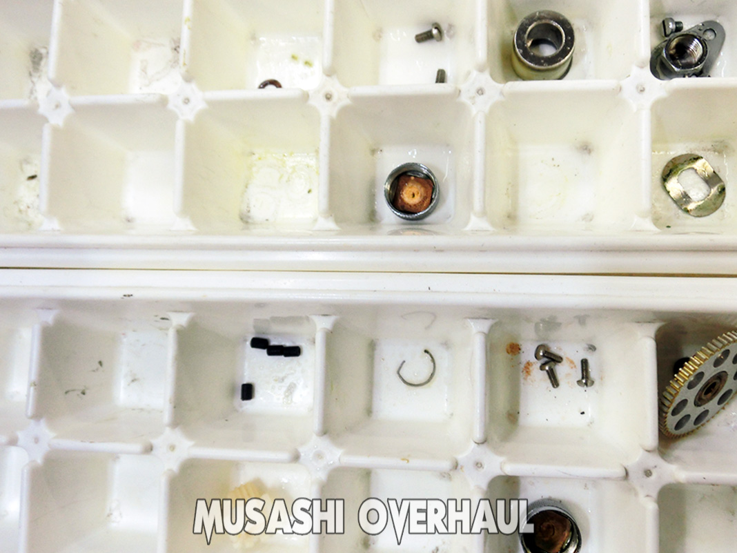 オーバーホールの基本ステップは以下の通りです:①完全バラ ②完全洗浄 ③完全磨き上げ が基本です。[展開図]