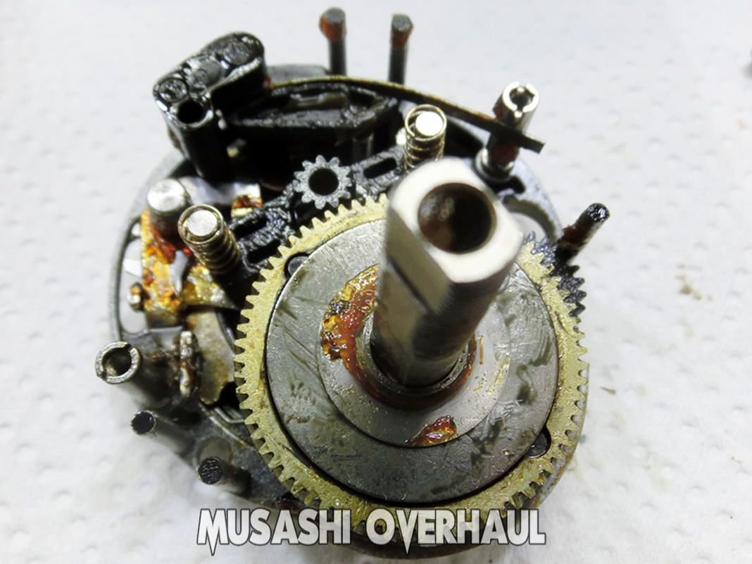 まずは オープンです!内部がギタギタになっておりました。グリスも乾燥しており 固着現象を起こしておりました。