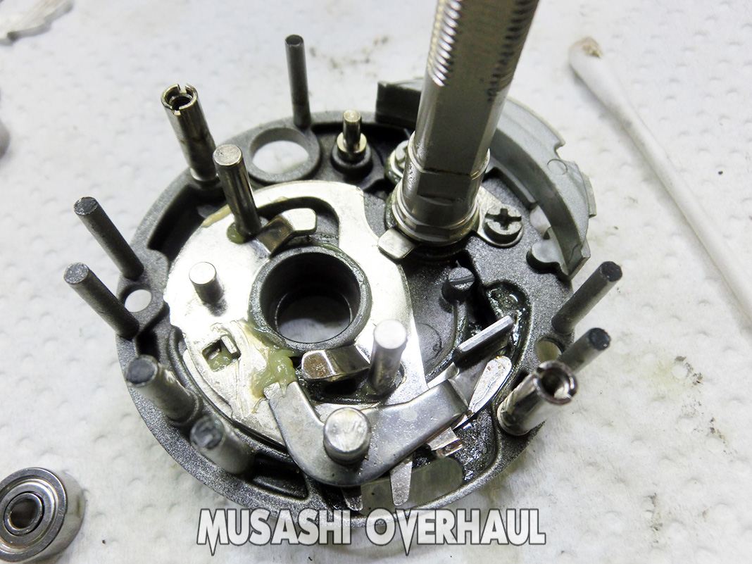 まずはオープン!リールの外見は綺麗でも中身が 異常 に悪いという事がよくあります。今回も グリス が固着して内部の動きを阻害しておりました。定期的な メンテナンスは重要ですね。
