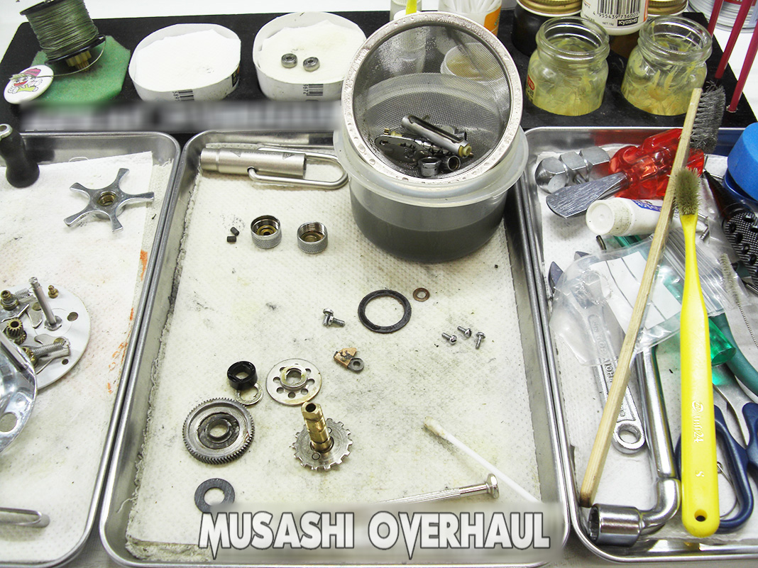 オーバーホールの基本ステップは以下の通りです:①完全バラ ②完全洗浄 ③完全磨き上げ が基本です。[展開図]