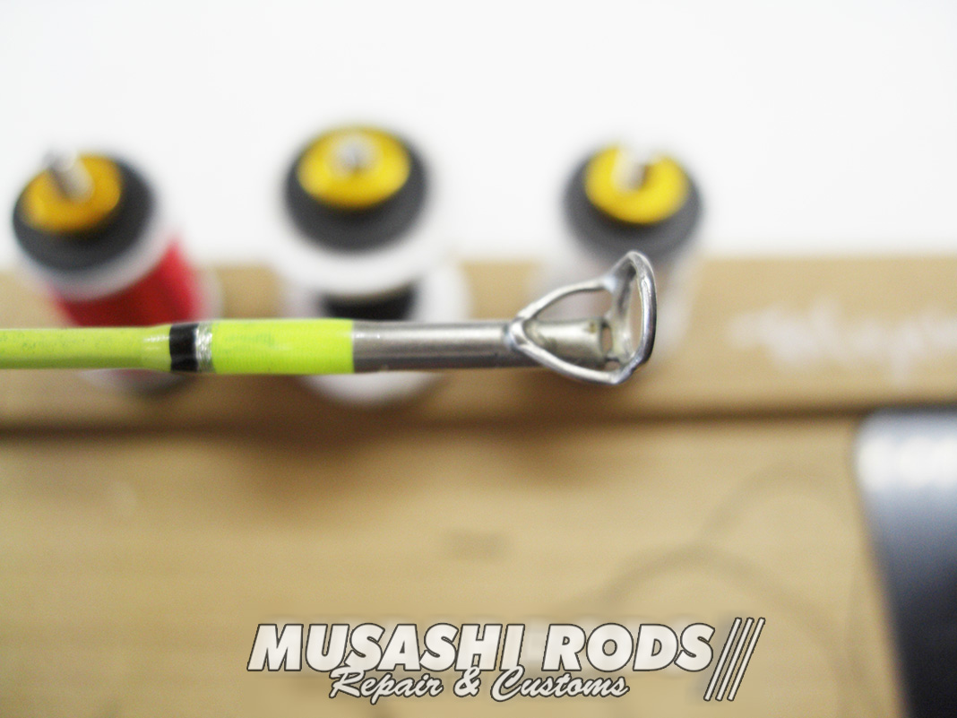 今回は エニグマロッド HVY FLIP ACTION 78FS-H のトップガイドを修理します。トップガイドは使い手が知らないうちに 曲がったり割れたりしてしまいます。ムサシロッド リペア&カスタムズ では あなたのロッドを希望通りに カスタム 致します。