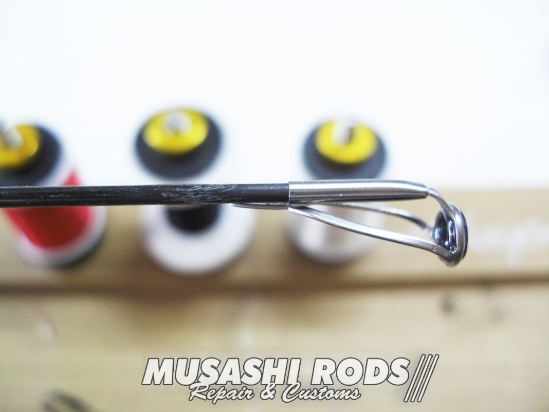 今回は デプス サイドワインダー ボアコンストリクター HGC-77XS (4544565173091) のトップガイドを修理します。ガイドは使い手が知らないうちに 曲がったり割れたりしてしまいます。ムサシロッド リペア&カスタムズ では あなたのロッドを希望通りに カスタム 致します。