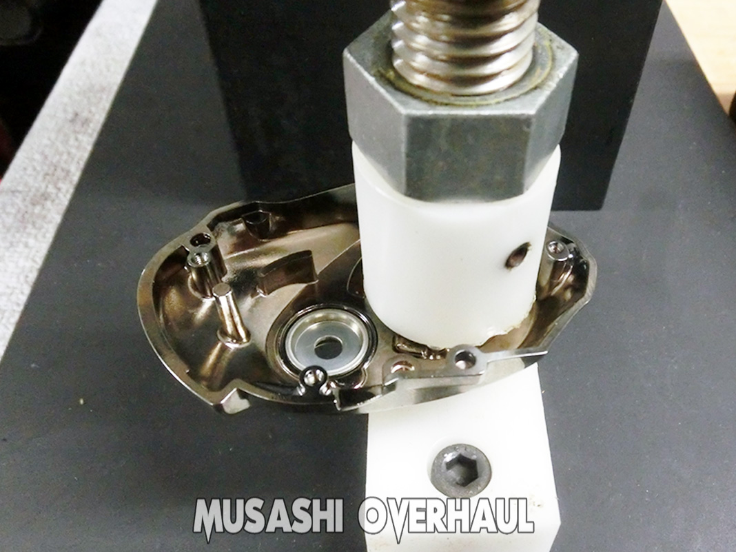 プシュ~と ワンウェイクラッチベアリング も圧入します。シマノ君 が活躍です