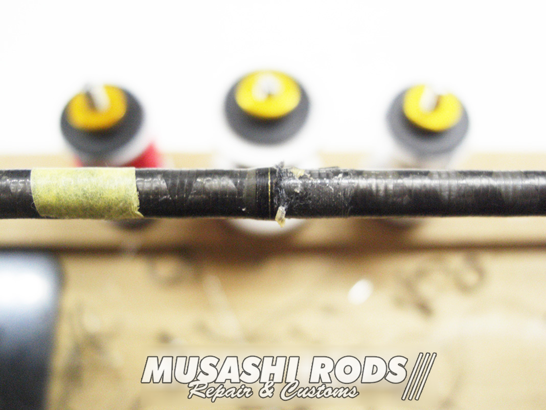 今回は シマノ 17 エクスプライド 172MH (372574) のガイドを修理します。写真の様にガイドが飛んでしまった様子。ガイドは使い手が知らないうちに 曲がったり割れたりしてしまいます。ムサシロッド リペア&カスタムズ では あなたのロッドを希望通りに カスタム 致します。