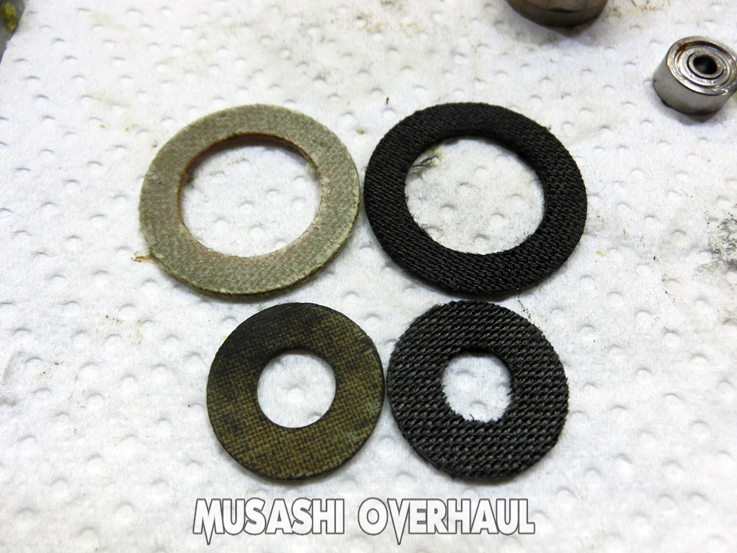 オールドシマノ製リールあるあるですが 部品番号:22番 128番 スタードラグ座金 を カーボンドラグワッシャー へ交換します。純正品は水を吸ってしまい ボロボロ のペッタンコ になってしまっており 滑りまくりです。こちらは 水ハケが良いので グリス が切れても強く機能します。ソルトユーザーさんは 是非是非導入してみてくださいね。こちら で購入できますヨ~