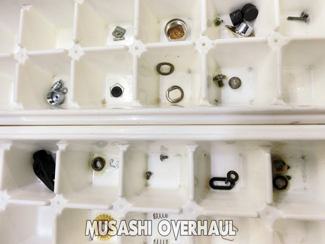 オーバーホールの基本ステップは以下の通りです:①完全バラ ②完全洗浄 ③完全磨き上げ が基本です。[展開図]