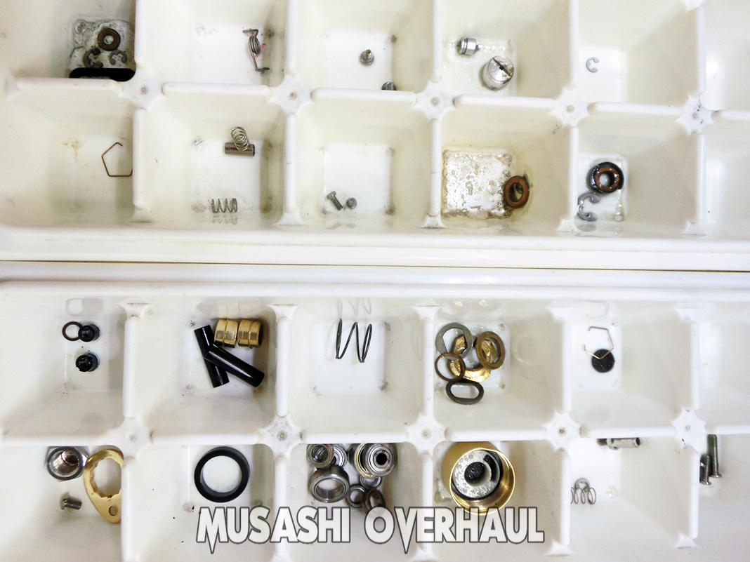 オーバーホール で受付けしました シマノ 01 カルカッタ コンクエスト 101 (01566) です。全体的に 乾いた感じと 内部からシャリシャリと異音がしますので 定期メンテナンス を希望です。自身でオーバーホールしてから 調子が悪い… 近所に釣具店が無い… このような ケースでお困りの方は お問い合わせ ください。ムサシオーバーホール 事業部ではスペアパーツも 豊富に在庫があります。
