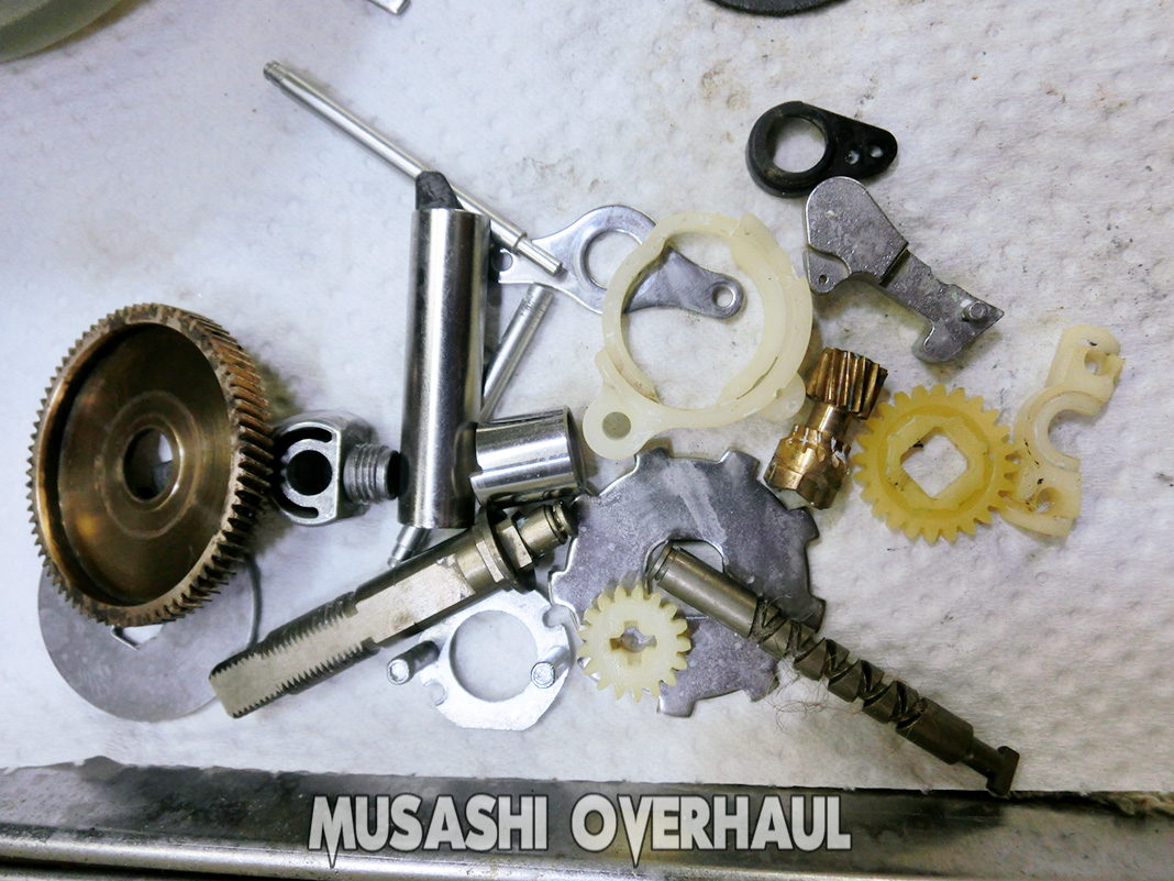 オーバーホールの基本ステップは以下の通りです:①完全バラ ②完全洗浄 ③完全磨き上げ が基本です。[展開図]