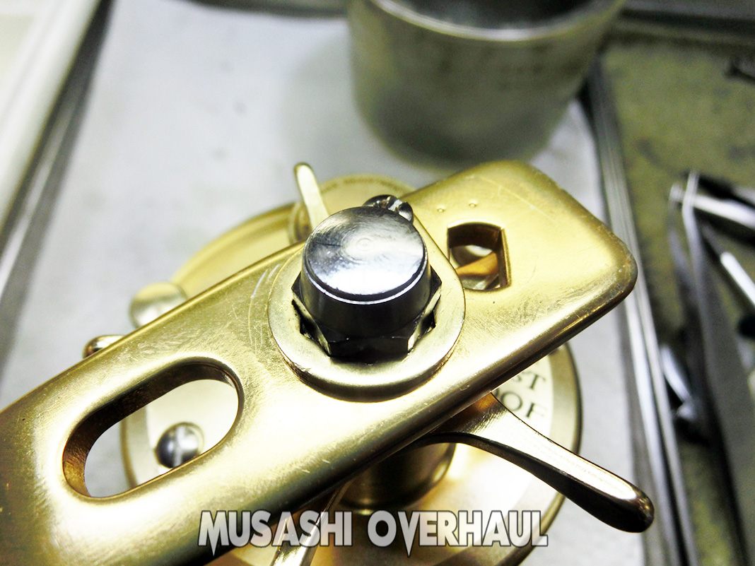 最後はナットを締めまして完了です。今回の代金は 6,000円+ベアリング代金 でした。リールのオーバーホール&メンテナンス、修理チューンはお任せください。リールは大切に!修理オーバーホールの申し込みは こちら からお願いします。