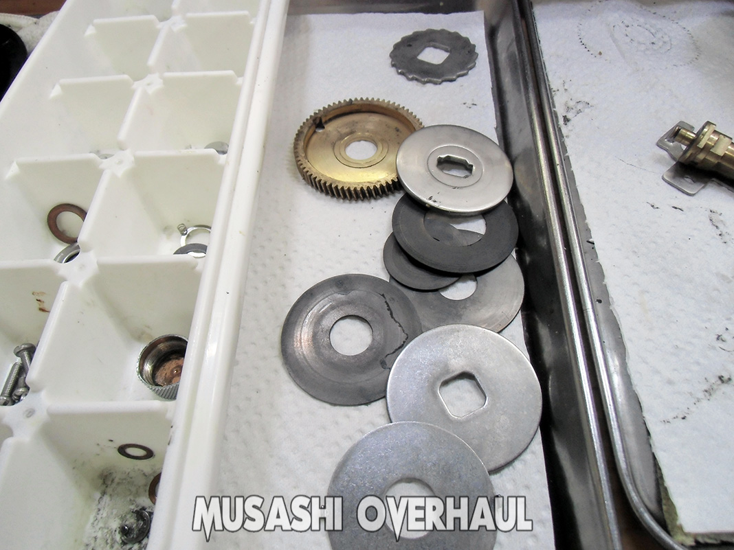 オーバーホールの基本ステップは以下の通りです:①完全バラ ②完全洗浄 ③完全磨き上げ が基本です。[展開図]