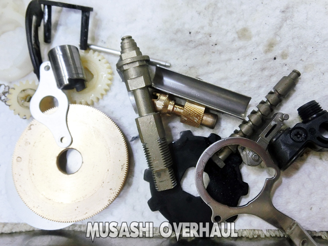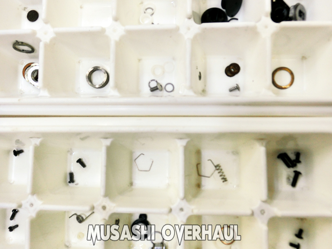 オーバーホールの基本ステップは以下の通りです:①完全バラ ②完全洗浄 ③完全磨き上げ が基本です。[展開図]