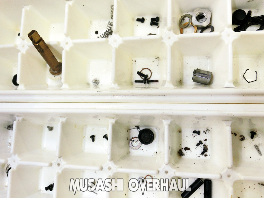 オーバーホールの基本ステップは以下の通りです:①完全バラ ②完全洗浄 ③完全磨き上げ が基本です。[展開図]