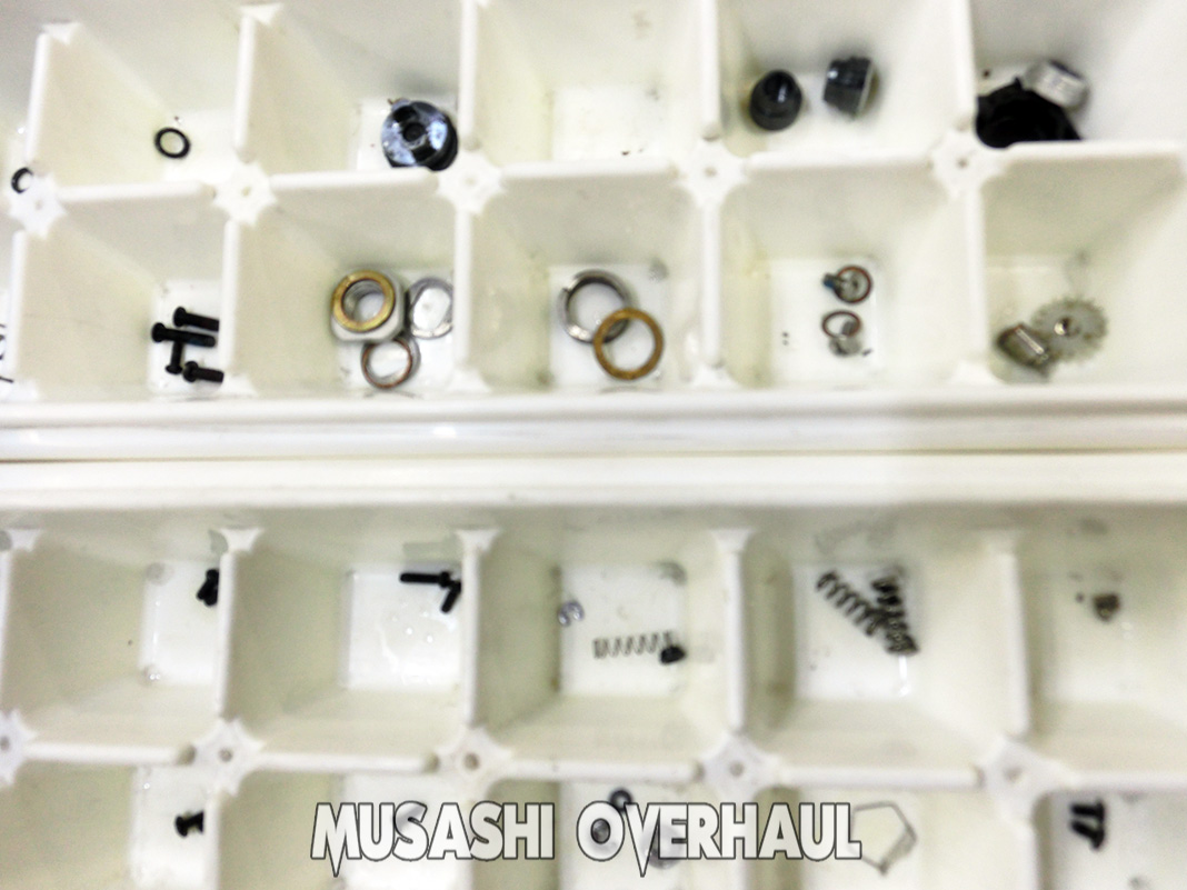 オーバーホールの基本ステップは以下の通りです:①完全バラ ②完全洗浄 ③完全磨き上げ が基本です。[展開図]