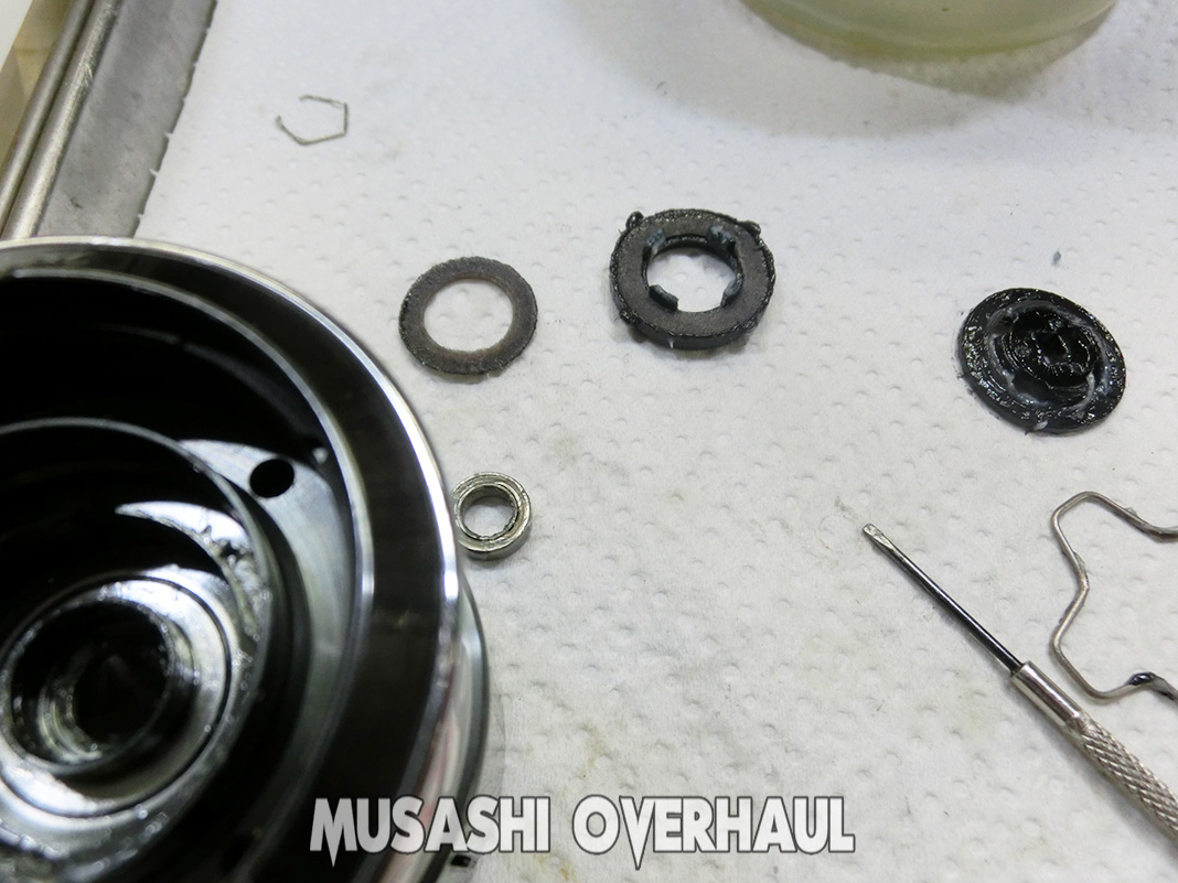 最後は ドラグワッシャー も メンテナンス しまして完了です。今回の代金は 6,000円+パーツ代金 でした。リールのオーバーホール&メンテナンス、修理チューンはお任せください。リールは大切に!修理オーバーホールの申し込みは こちら からお願いします。