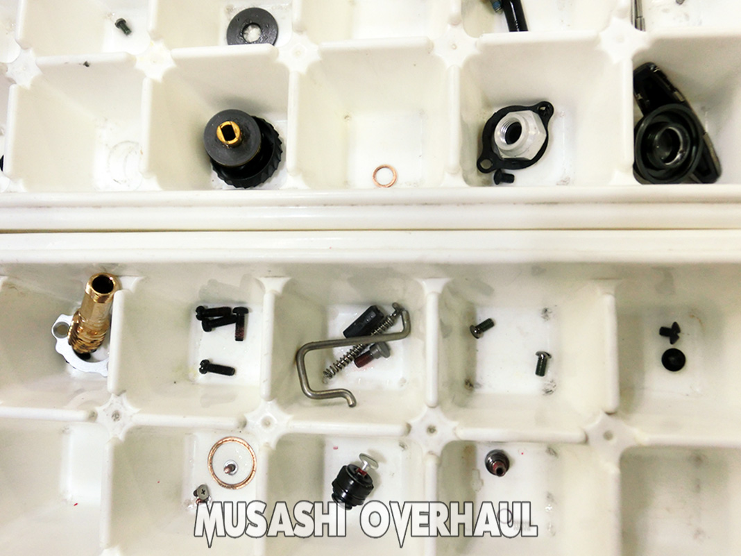オーバーホールの基本ステップは以下の通りです:①完全バラ ②完全洗浄 ③完全磨き上げ が基本です。[展開図]
