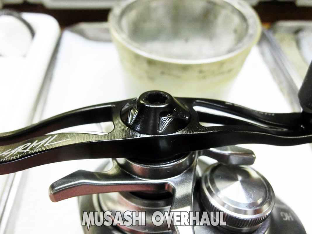 あとはハンドルリテーナーのナットを締めまして完成です。今回の代金は 3,500円+ベアリング代金 でした。リールのオーバーホール&メンテナンス、修理チューンはお任せください。リールは大切に!修理オーバーホールの申し込みは こちら からお願いします。