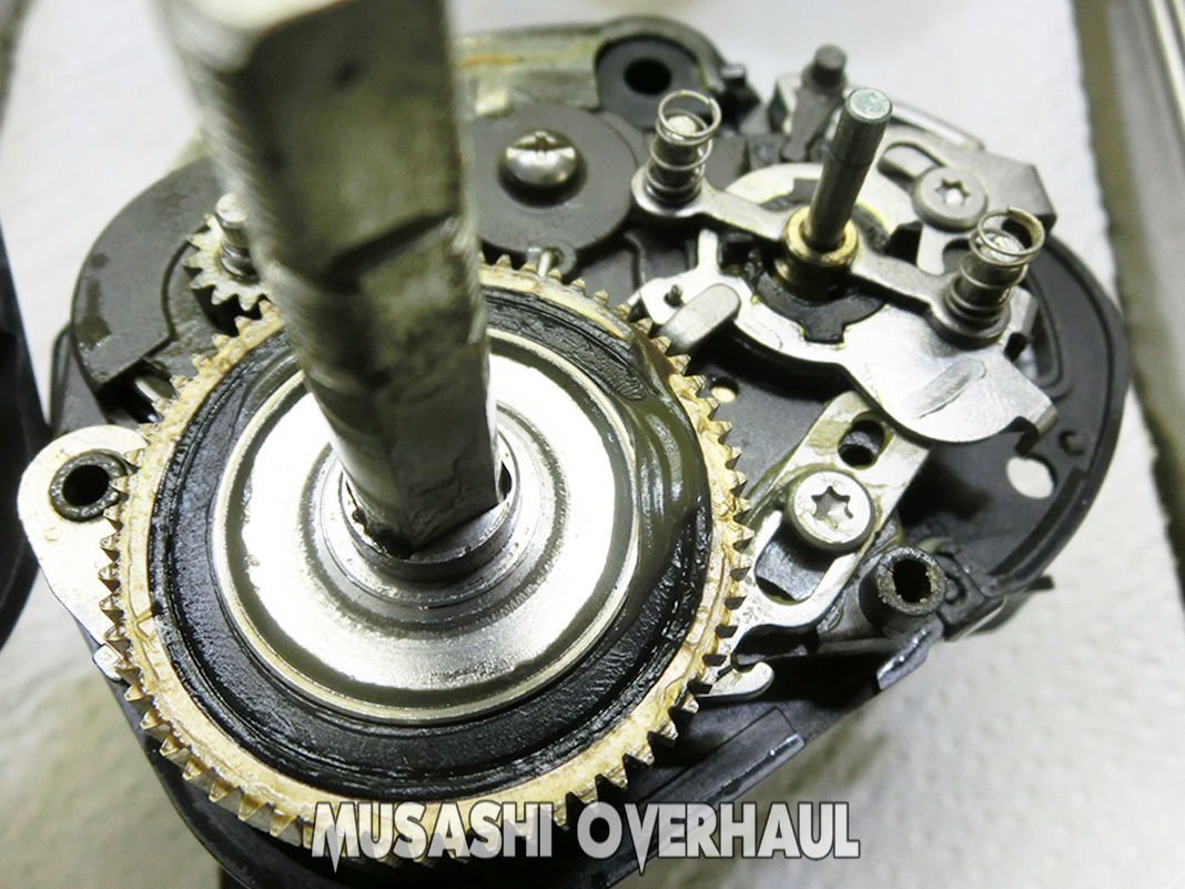 最終フィーリングは グリス の量で調整です。いい感じです!これでよろこんで頂けると思います。今回の代金は 4,500円+ベアリング代金 でした。リールのオーバーホール&メンテナンス、修理チューンはお任せください。リールは大切に!修理オーバーホールの申し込みは こちら からお願いします。