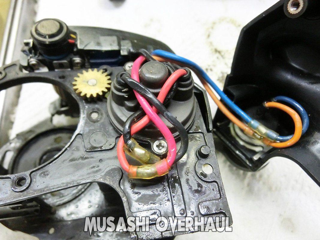 電動リールの泣き所でもある 部品番号66番 モーター 部分も点検します。内部は防水でパッキンが入っていますが 浸水している事もありますね~