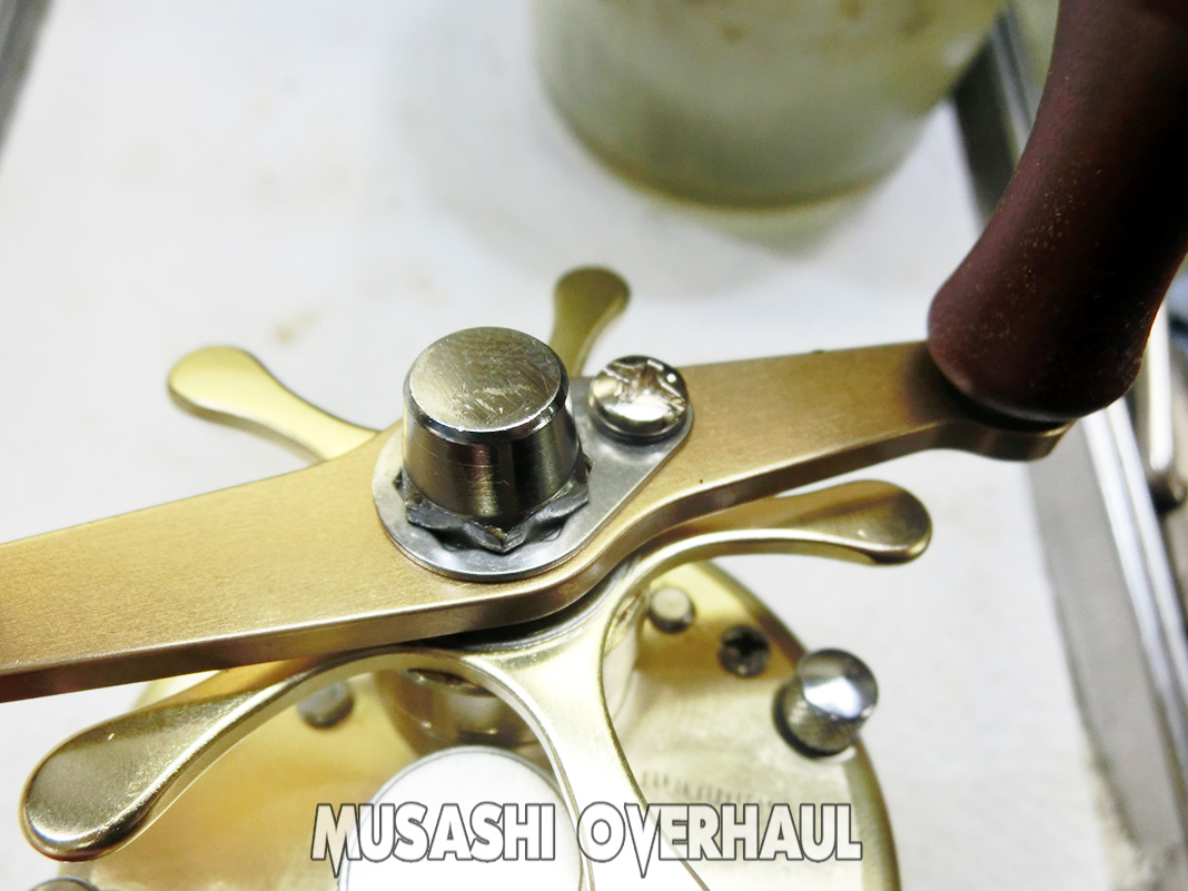 最後は ハンドルナット を締めまして完了です。今回の代金は 4,000円+パーツ代金 でした。リールのオーバーホール&メンテナンス、修理チューンはお任せください。リールは大切に!修理オーバーホールの申し込みは こちら からお願いします。