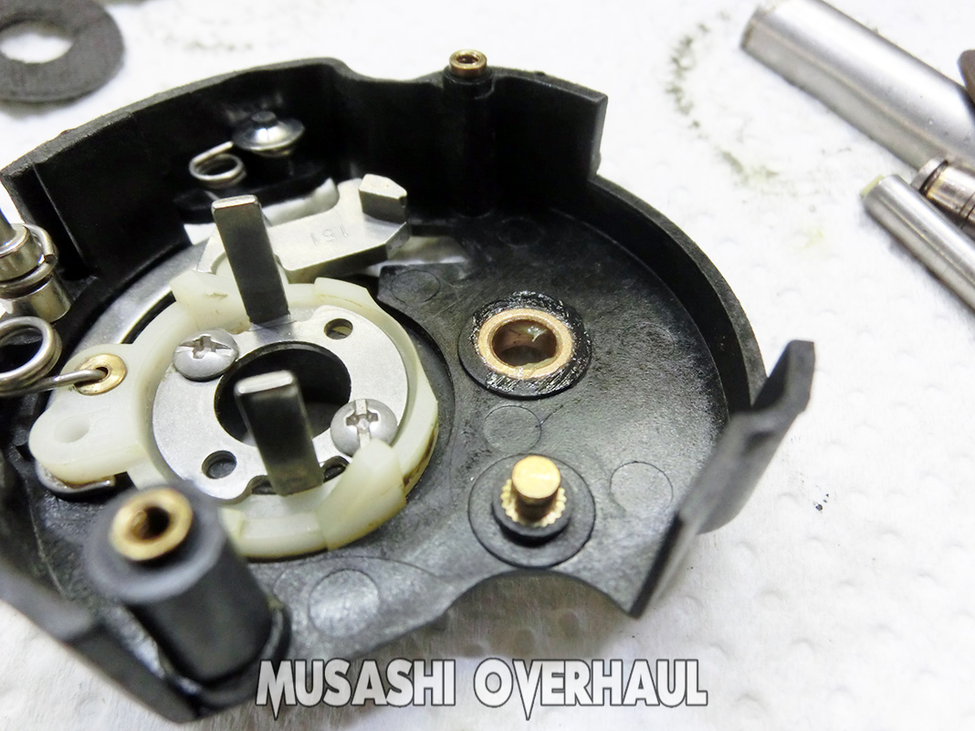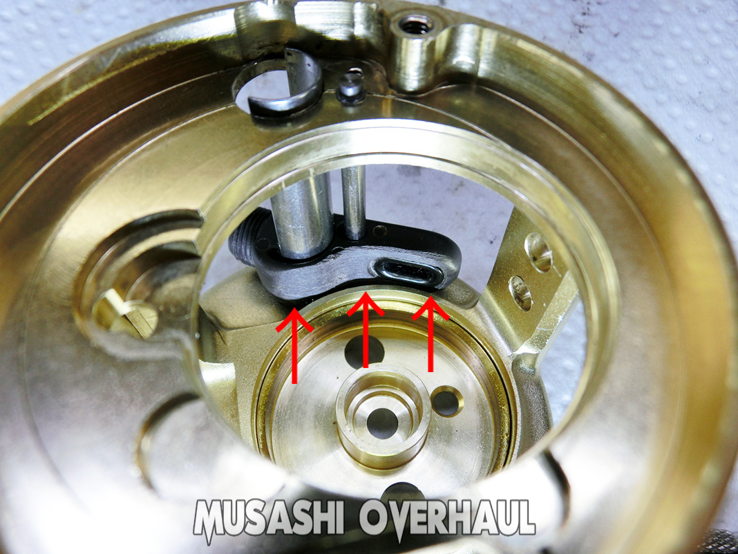 オールドシマノ製リールあるあるですが 部品番号:22番 128番 スタードラグ座金 を カーボンドラグワッシャー へ交換します。純正品は水を吸ってしまい ボロボロ のペッタンコ になってしまっており 滑りまくりです。こちらは 水ハケが良いので グリス が切れても強く機能します。ソルトユーザーさんは 是非是非導入してみてくださいね。こちら で購入できますヨ~