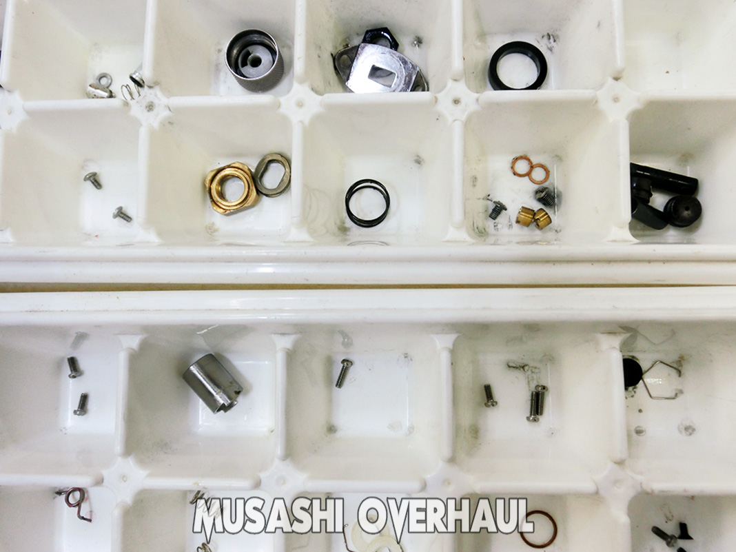 オーバーホールの基本ステップは以下の通りです:①完全バラ ②完全洗浄 ③完全磨き上げ が基本です。[展開図]