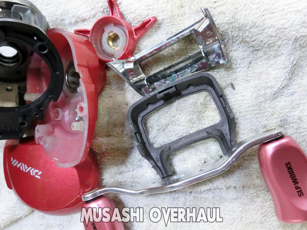 あとはボディを磨き上げて完了です。今回の代金は 4,000円 でした。リールのオーバーホール&メンテナンス、修理チューンはお任せください。リールは大切に!修理オーバーホールの申し込みは こちら からお願いします。