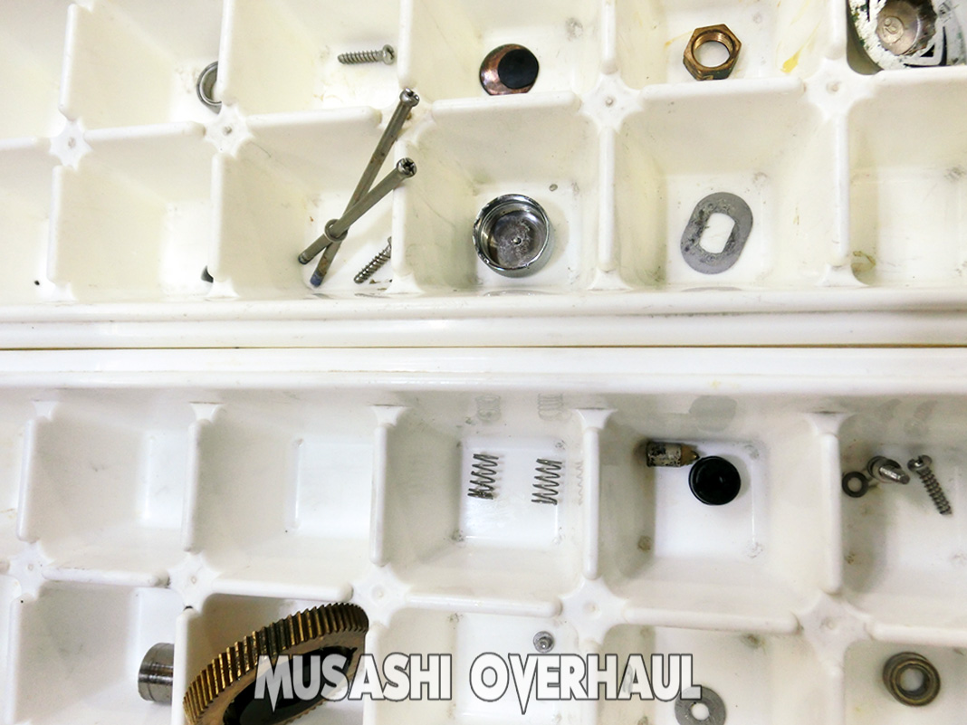 オーバーホールの基本ステップは以下の通りです:①完全バラ ②完全洗浄 ③完全磨き上げ が基本です。[展開図]