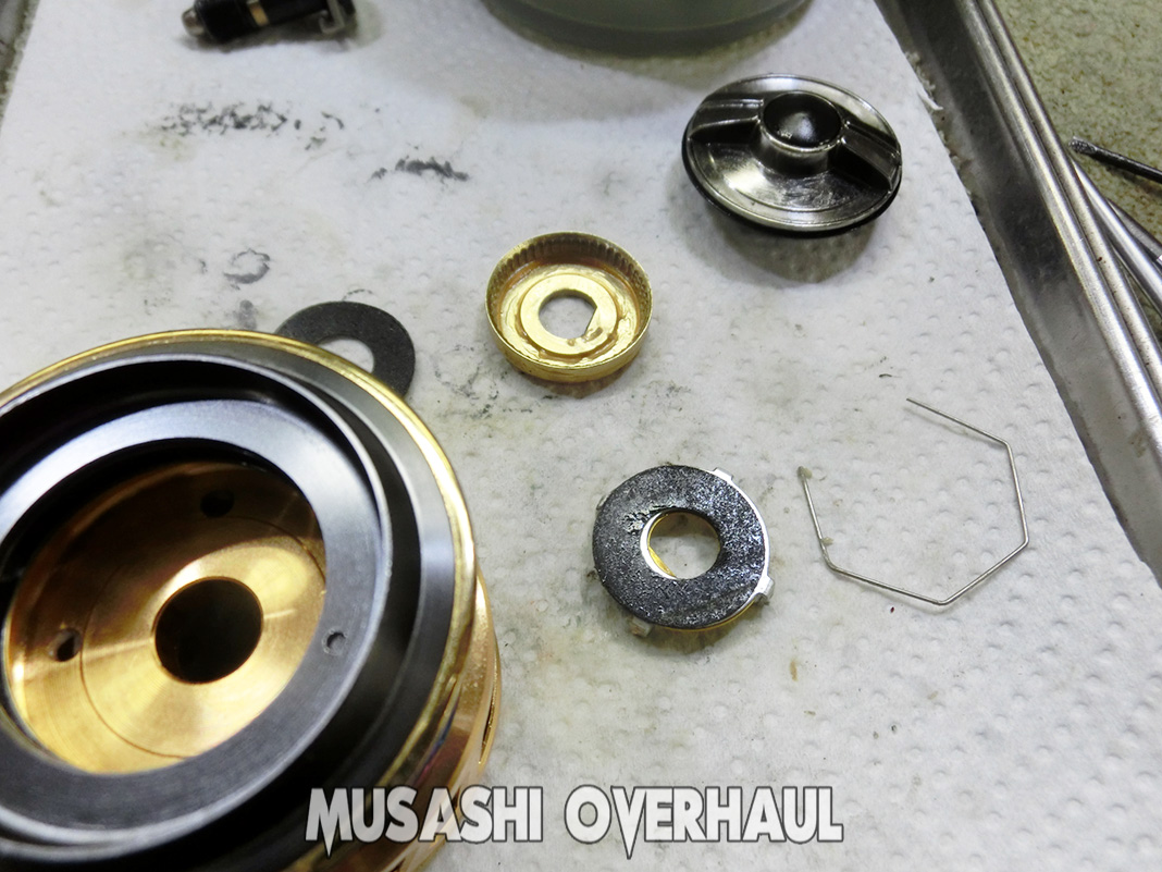 オーバーホールの基本ステップは以下の通りです:①完全バラ ②完全洗浄 ③完全磨き上げ が基本です。[展開図]