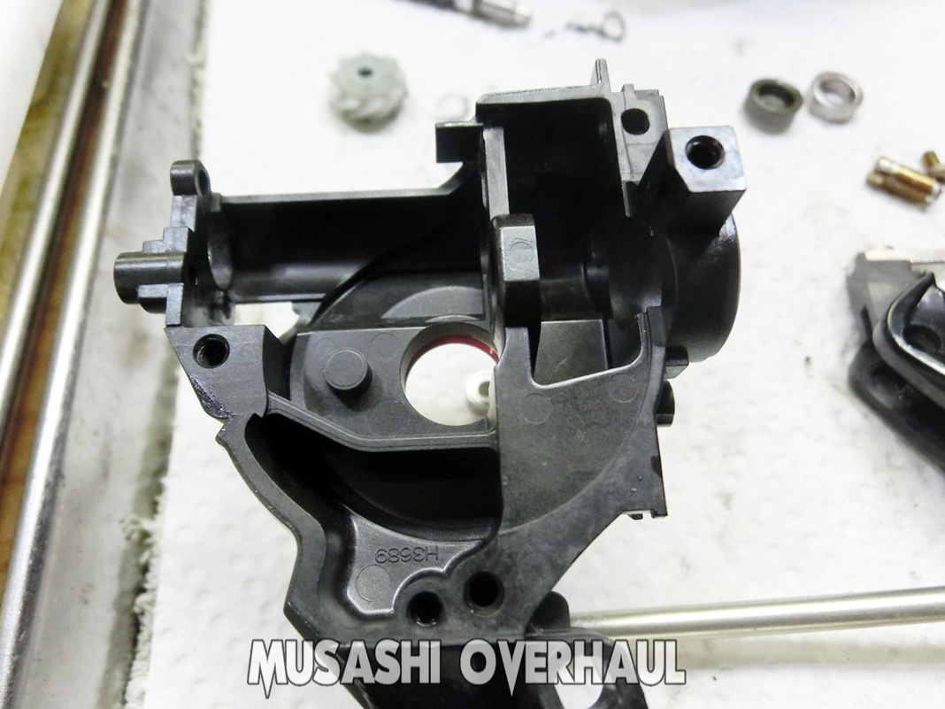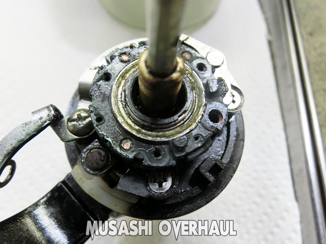 早速ですが 今回の異音の原因を発見しました。部品番号43番 ボールベアリング の磨耗です。中央部分に嵌っている一番大きなベアリングが経年劣化(錆や磨耗)してしまうともの凄い大きな音が鳴ってしまいます。もう磨耗しているので 注油しても洗っても無駄ですね。交換あるのみです。