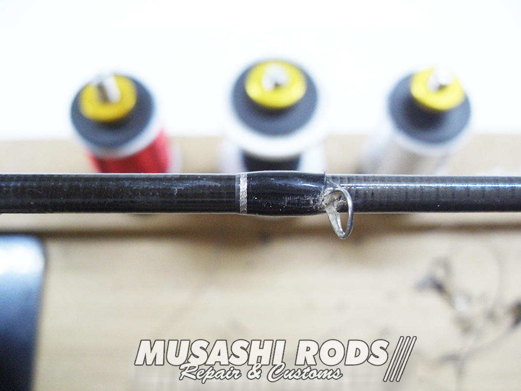 今回は ダイワ ブラックレーベル BL681MHFB (01403598) のベリー部のガイドを修理します。写真の様にガイドリングは抜けてしまった様子。ガイドは使い手が知らないうちに 曲がったり割れたりしてしまいます。ムサシロッド リペア&カスタムズ では あなたのロッドを希望通りに カスタム 致します。