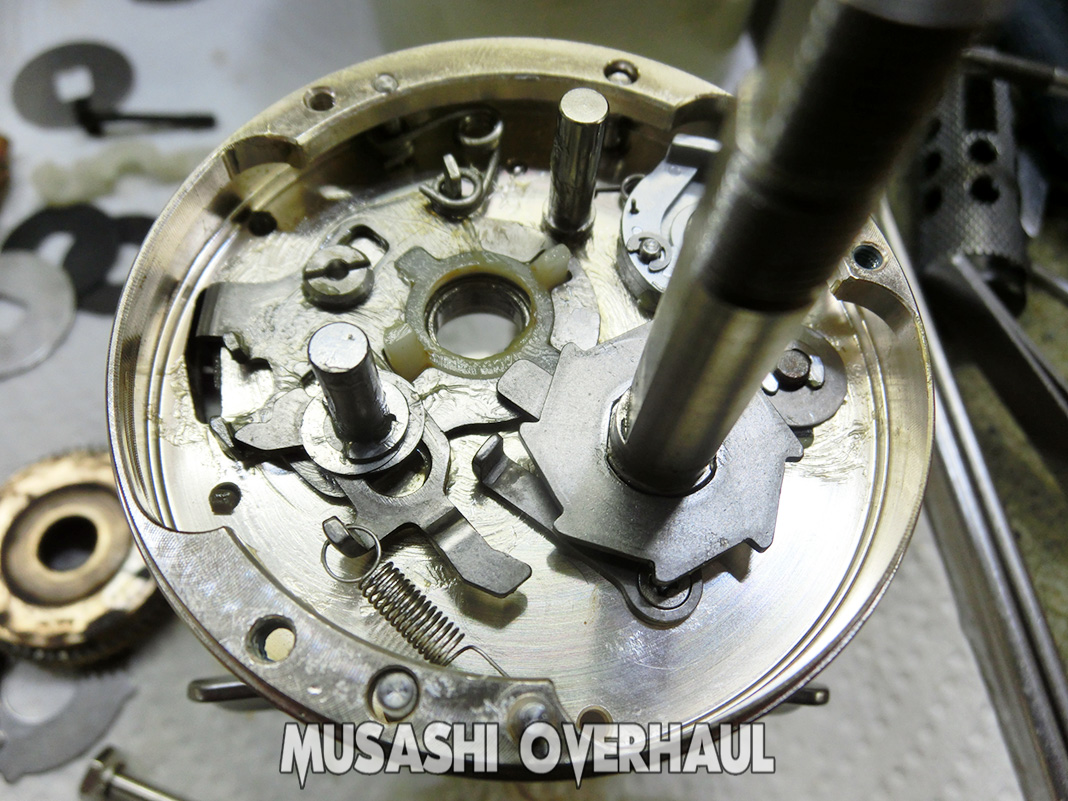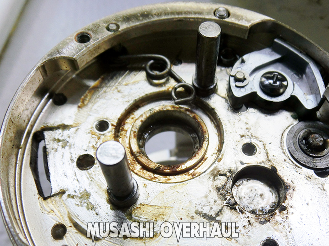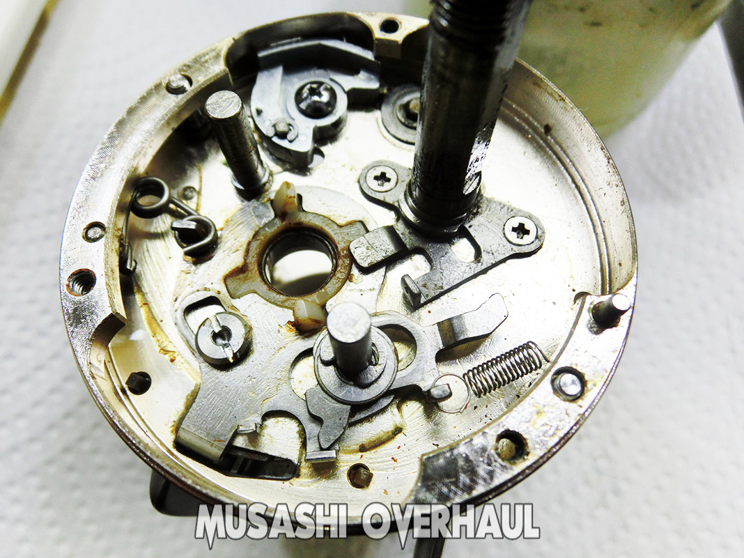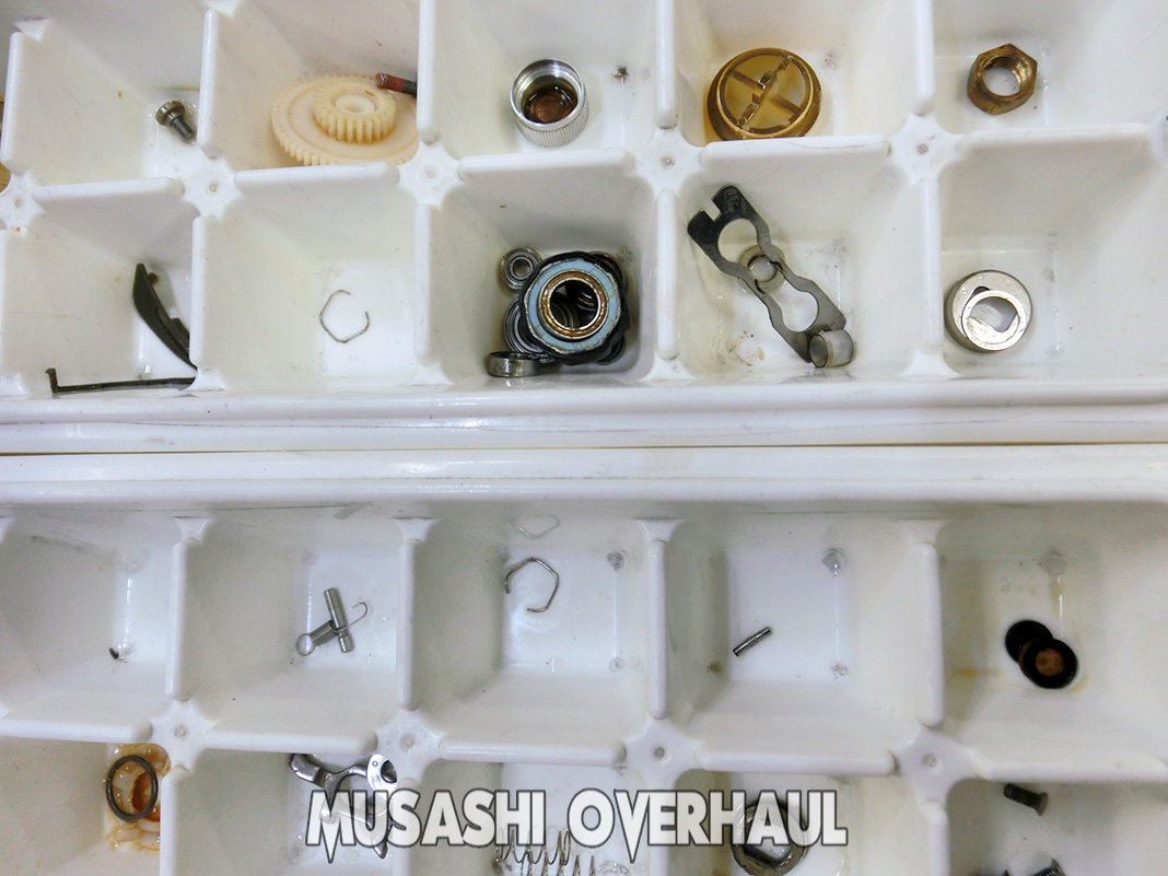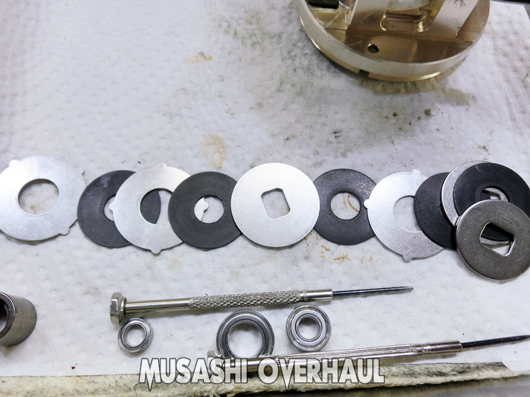 オーバーホールの基本ステップは以下の通りです:①完全バラ ②完全洗浄 ③完全磨き上げ が基本です。[展開図]