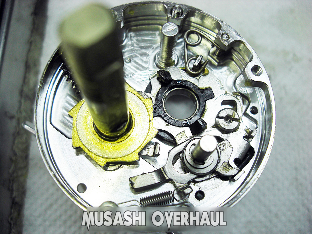 オーバーホールの基本ステップは以下の通りです:①完全バラ ②完全洗浄 ③完全磨き上げ が基本です。[展開図]