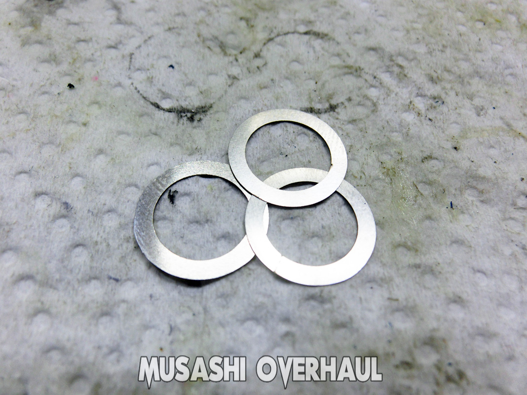 クリアランスシム の調整ですが 左右の2箇所から行います。経験上 0.01mmの一枚追加のみ。二枚追加は時々、三枚は殆どありませんですね~ 間違えるととんでも無い事になってしまいますね。