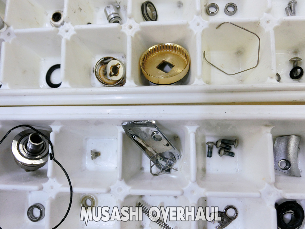 最後はスプールもバラしまして完成です。今回の代金は 6,000円+パーツ代金 でした。リールのオーバーホール&メンテナンス、修理チューンはお任せください。リールは大切に!修理オーバーホールの申し込みは こちら からお願いします。