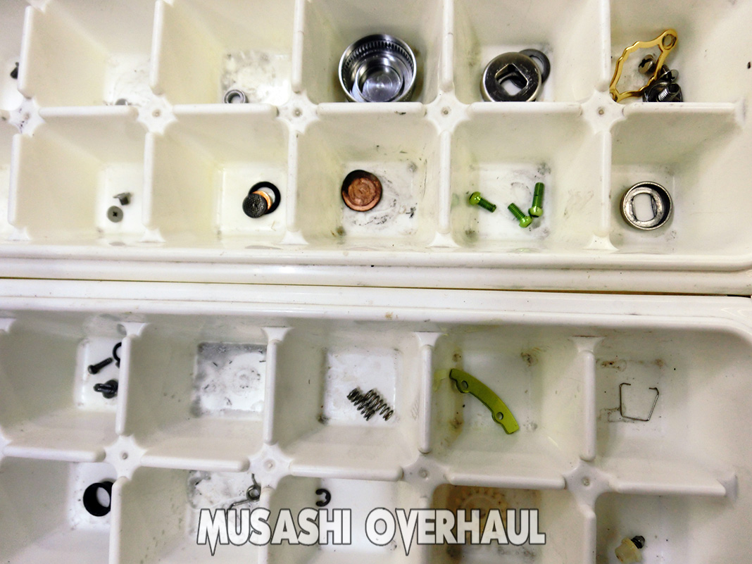 オーバーホールの基本ステップは以下の通りです:①完全バラ ②完全洗浄 ③完全磨き上げ が基本です。[展開図]