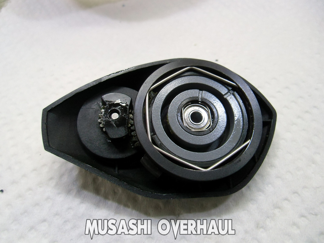 最後はハンドルリテーナーのネジ締め上げて完了です。今回の代金は4,000円+ベアリング代 でした。リールのオーバーホール&メンテナンス、修理チューンはお任せください。リールは大切に!修理オーバーホールの申し込みは こちら からお願いします。