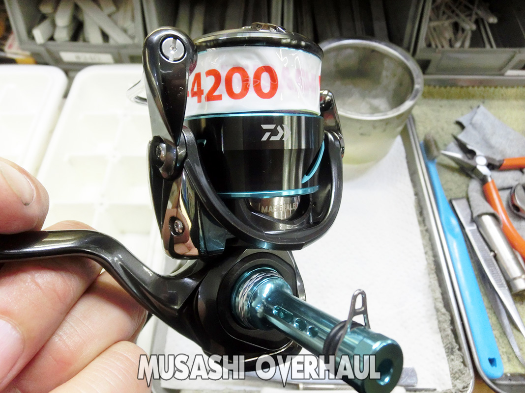 最後に全体的な調整を済ませて完成です。今回の代金は 5,000円+パーツ代 でした。リールのオーバーホール&メンテナンス、修理チューンはお任せください。リールは大切に!修理オーバーホールの申し込みは こちら からお願いします。