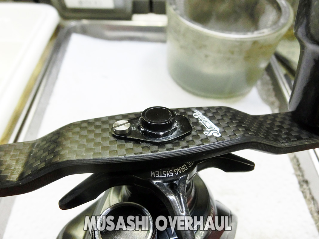 最後は ハンドルを装着しまして完了です。今回の代金は 4,000円+ベアリング代金 でした。リールのオーバーホール&メンテナンス、修理チューンはお任せください。リールは大切に!修理オーバーホールの申し込みは こちら からお願いします。