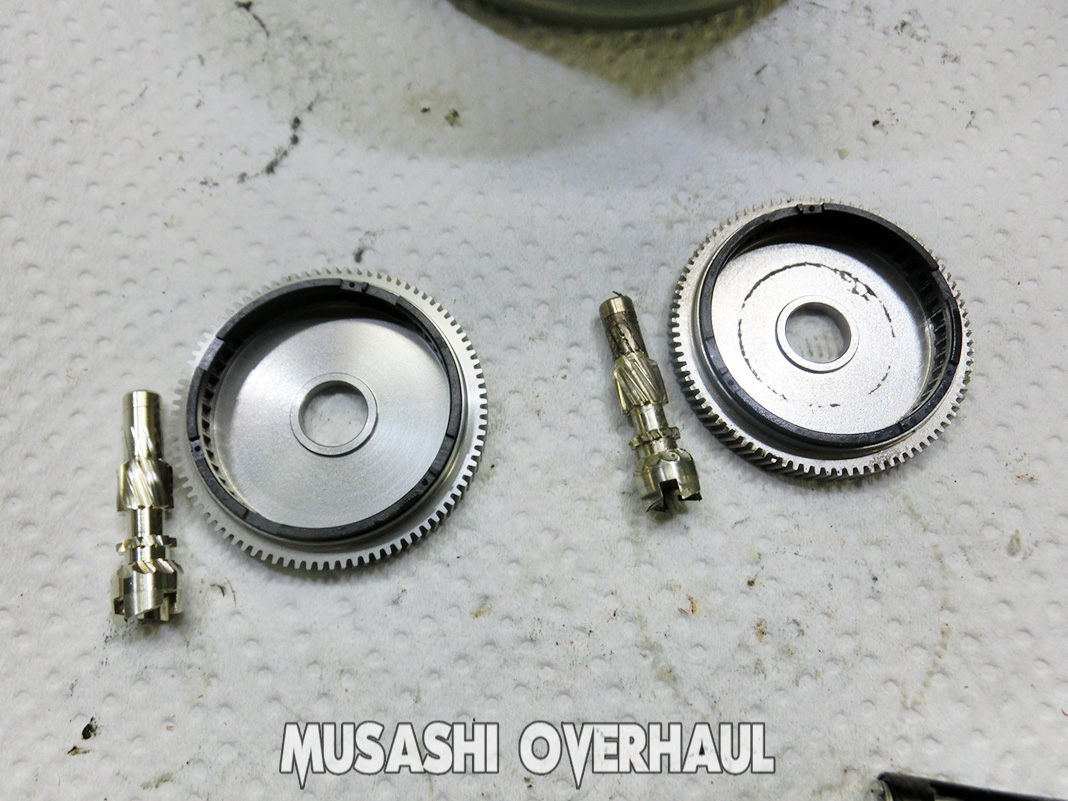 この錆びた個体を パワーハンドル で回してしまっていたのでギアの歯が削れてしまっておりました。交換するパーツ 部品番号[76] ドライブギア と 部品番号[54] ピニオンギア です。もう少し早く メンテナンス して頂ければ安く済んだのですが 残念ですね。