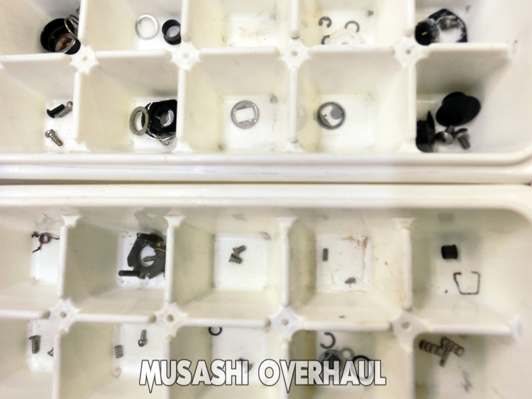オーバーホールの基本ステップは以下の通りです:①完全バラ ②完全洗浄 ③完全磨き上げ が基本です。[展開図]