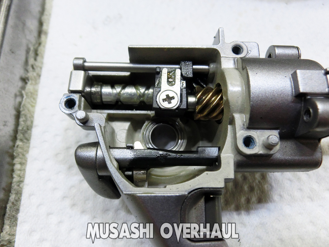 まずは オープン からの バラしていきます。早速ですが グリスが経年劣化で固着している様子でした。これではダメですね~