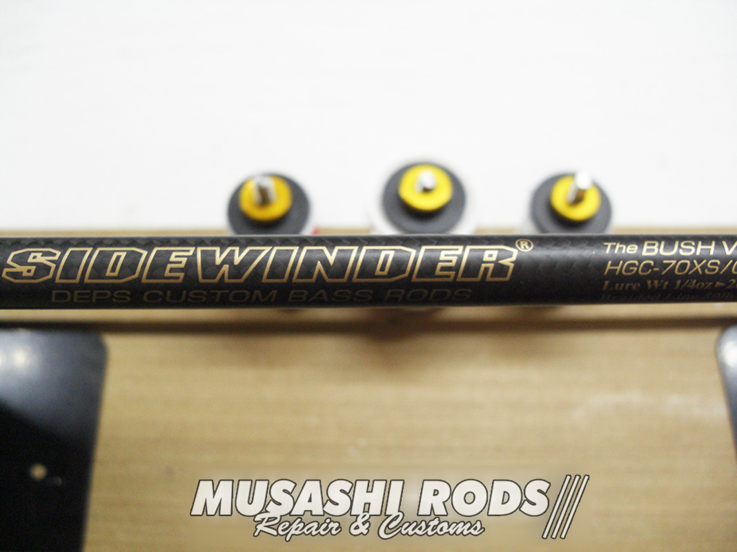 今回は デプス サイドワインダー HGC-70XS ブッシュバイパー (4544565173022) のガイド修理をします。トップガイドのリングが外れてしまったそうです。リングが外れてしまった場合は交換となります。ムサシロッド リペア&カスタムズ では あなたのロッドを希望通りに カスタム 致します。