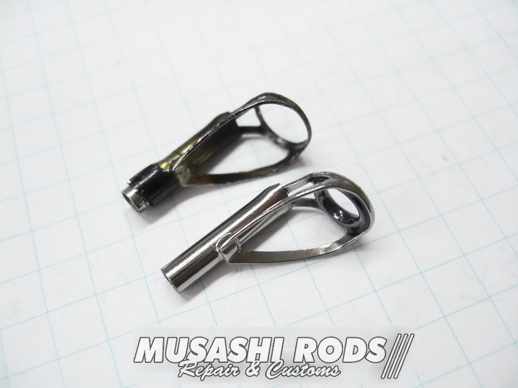 今回の使用するガイド 富士工業製 T-KGST 6-2.6 (1350円) です。写真のようにリングが抜けております。トップガイドは天井にぶつけたり、車に乗せる時にぶつけたりと よく壊れます。
